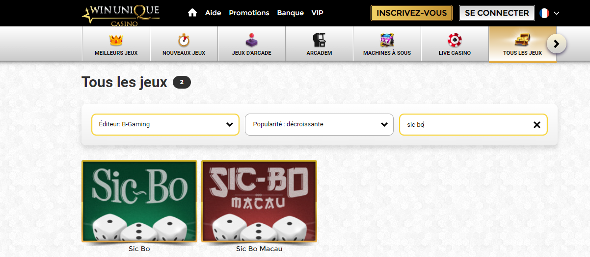 Bien qu’il ne propose pas le jeu du Sic Bo, son offre globale en fait une plateforme incontournable.